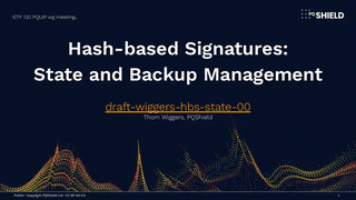 At IETF 120 in Vancouver, I provided an update on our ongoing work standardizing state and backup management for stateful hash-based signature (HBS) schemes like LMS and XMSS. This update focused on the recently submitted draft-wiggers-hbs-state-00.